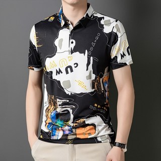남자 티셔츠 폴로 셔츠 프린트 아이스 실크 고급 반팔 캐주얼 속건 통기 여름 상의