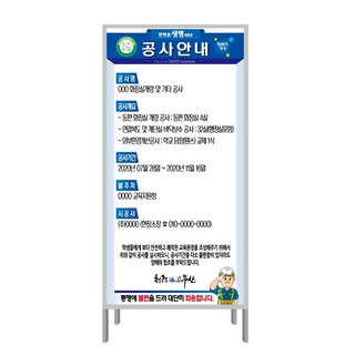 공사중표지판 안전간판 공사안내표지판 A형간판 공사현장간판 교통안전표지판 공사안내A형 (900x1800), (A형단면), 1개
