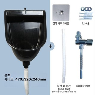 소형 소변기 간이 화장실 펜션 야외 공사장 벽걸이형 공중화장실 플라스틱소변기, 검정색-일반 하수관노출형 플러시 밸브