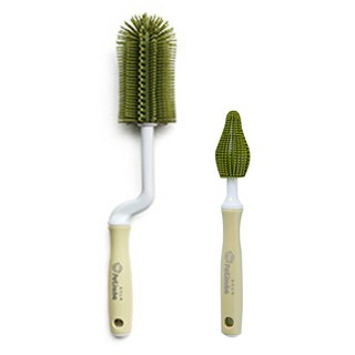 쁘띠누베 국내 제조 실리콘 젖병솔 회전형 + 일자형 젖꼭지솔, 1세트, OLIVE