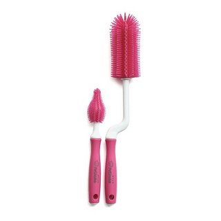 쁘띠누베 국내 제조 실리콘 젖병솔 회전형 + 일자형 젖꼭지솔, 1세트, PINK