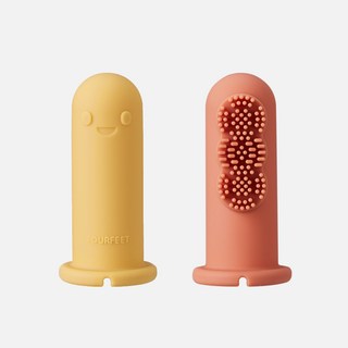 [다이노 손가락 칫솔] 2개입 _ 손가락칫솔/ 신생아칫솔 / 유아칫솔 / 출산선물 / 실리콘칫솔, 머스타드+코랄, 1개, 1세트