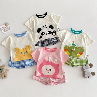 뽀뽀뽀 아동복 유아 체크타이 상하복 여름 정장 세트 타이 포함 캐주얼 곰돌이 아동 키즈 하객룩