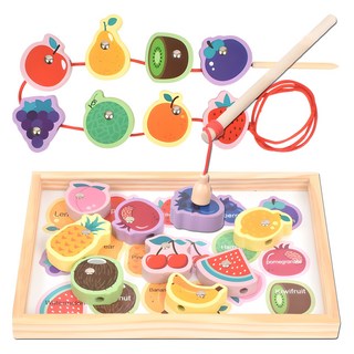 목제 블럭 실꿰기 자석 낚시놀이 교구, 과일, 1세트