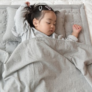 디케이홈 아기 순면패드&베개 세트 - 키즈 100x150 유아패드, 그레이체크