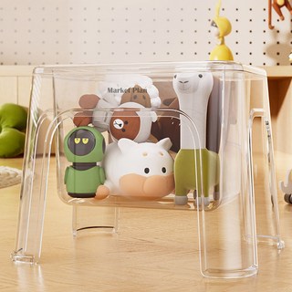 마켓플랜 아크릴 수납함 스툴 의자, 투명, 1개