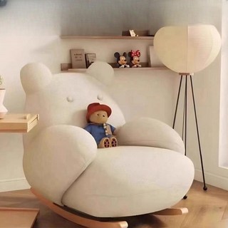 [크림톤 곰돌이 흔들의자] 귀여운 1인용 리클라이너 소파 각도 조절 가능 감성 인테리어 체어, 크림색흰색