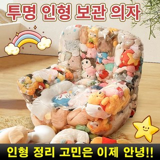 [인스타 유행!] 투명 인형 보관 의자 장난감 쇼파 좌석 인형보관함 다용도 소파 1인용 에어 거실 원룸 인테리어 소품 빈백 지퍼형 (인형 미포함!), 1개, 지퍼형-대용량(100*95*90)