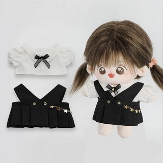 20cm 모카돌 솜인형 옷 오버롤 원피스 + 블라우스 세트, 블랙, 1세트