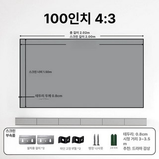 와이드 액자 단초점빔스크린 빔 홈시어터 프로젝터, 화이트 소프트, 100인치 4 3