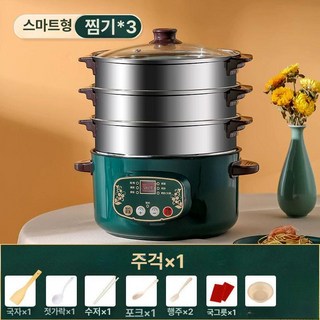 3단 전기 찜기 떡 찐빵 다기능 만두 방앗간 가정용, 1 레이어, 스마트 모델 22 CM 증기선 3대