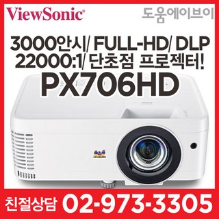 뷰소닉 PX706HD 3000안시 풀HD 22000:1 DLP 단초점프로젝터 회의용 교육용 가정용 전시용 멀티용 빔프로젝터