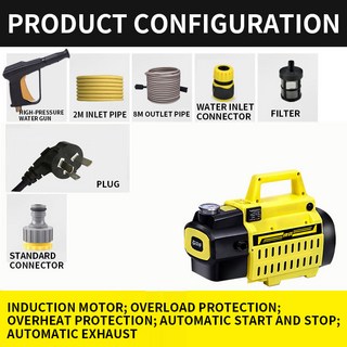 ZN-S3 고압 가정용 세탁기 고출력 물총 자동 세차 브러시 펌프 도구 220V, 01 YELLOW
