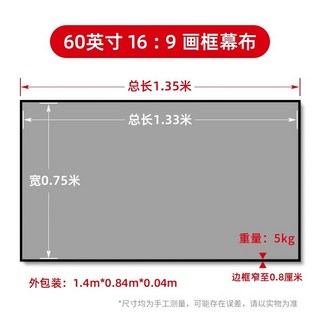 CLR스크린 액자형 프리미엄 빔프로젝터 거실 홈시어터, 60인치 16 9 조립 없음 고강도 올 메탈 프레임, 옵티컬화이트소프트커텐