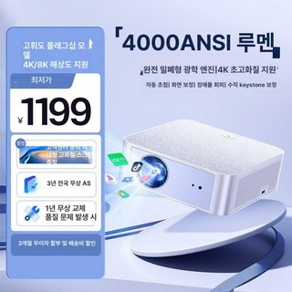 2025년형 초고화질 휴대용 프로젝터 미니빔프로젝터 스마트, 프리미엄형-4K 초고화질, 기본 색상