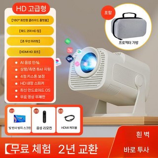 스마트 휴대용 빔 프로젝터 HY320 미니 4K지원 180도 회전형 대형스크린 OTT탑재, 크림 화이트(HD)+가방