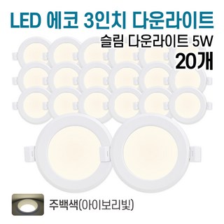 라인라이팅 LED 에코 3인치 다운라이트 5W (벌레유입방지/방습), 주백색(아이보리빛), 20개