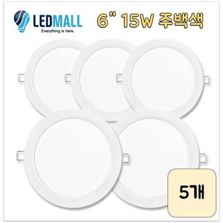 LED 안정기 다운라이트 매입등 매립등 6인치 15W, 5개, 주백색