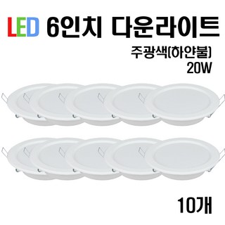 라인조명 LED 에코 6인치 다운라이트20W (주광/전구/주백), 주광색(흰빛), 10개