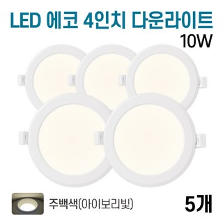 라인라이팅 LED 4인치 다운라이트 10W (벌레유입방지/방습), 5개, 주백색