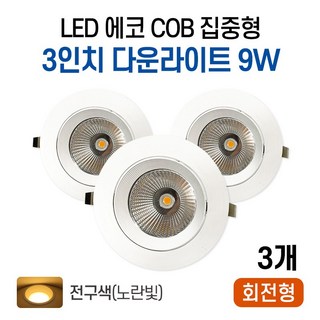 라인조명 LED 에코 COB 집중형 3인치 다운라이트 9w, 3개, 전구색