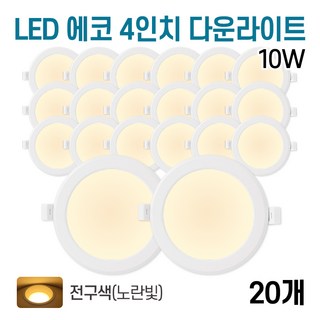 라인라이팅 LED 4인치 다운라이트 10W (벌레유입방지/방습), 20개, 전구색