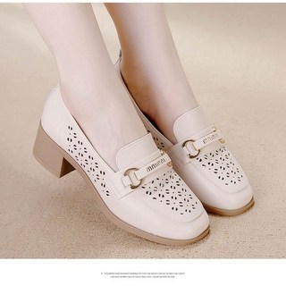 여성용 여름 로퍼 가죽 통굽 구두 5cm