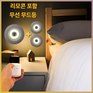 코멧 자석 부착형 LED 무드등 3개 + 리모컨, 화이트