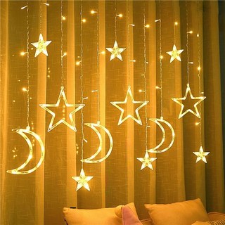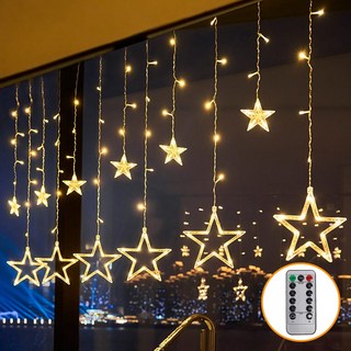 크리스마스 조명 거실 LED 커튼식 창문 유리 트리 장식 감성캠핑 가랜드조명, 달+별, 8모드+베터리케이스, 1개, 웜톤