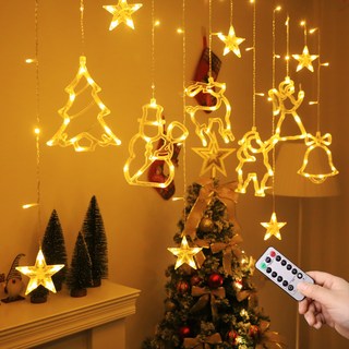 크리스마스 조명 거실 LED 커튼식 창문 유리 트리 장식 감성캠핑 가랜드조명, 커튼식 일자조명, 8모드+베터리케이스, 1개, 웜톤