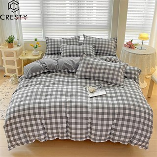 크레스티 체크무늬 이불커버+침대시트+베개커버 사계절 부드러운 침구 4종 세트