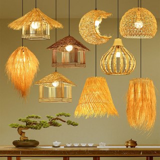 라탄 샹들리에 레스토랑 레트로 홈스테이 라탄 새 둥지 램프 일본 호텔 레스토랑 밀짚모자 램프 갓 대나무 아트 대나무 팅생, 25CM 자연색-소형 ♜