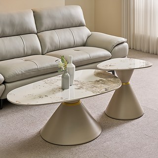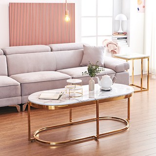 아우스 XM09 비즈크림 소파테이블 라운드 세라믹 타원형 거실테이블 디자인 인테리어테이블 골드 거실탁자