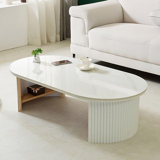 알모어 안정적인 거실 테이블 쇼파 좌식 탁자 커피 낮은 대리석 세라믹 테이블, 화이트, 1200 x 600 x 430mm