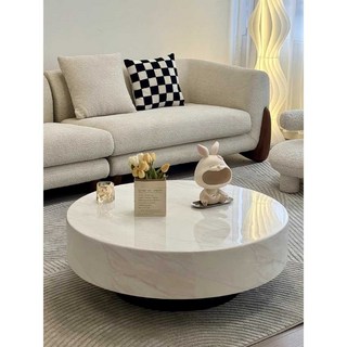 태영스토어 우드 라운드 거실 리빙 선반 테이블, 마블화이트