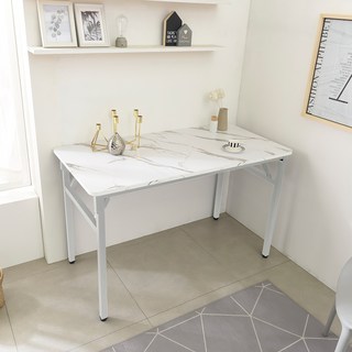 다다재 하이그로시 인테리어 접이식 다용도 테이블, 화이트 + 마블링