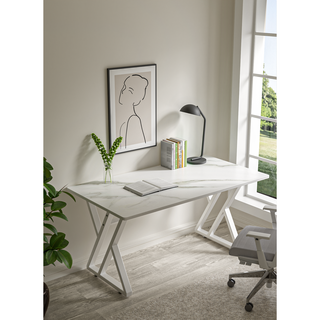 Kurua 다용도 철제 컴퓨터 사무용책상, 우드화이트