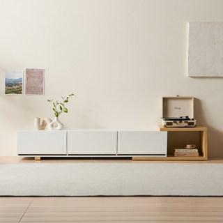 페리 확장형 수납 거실장 방문설치, 화이트 + 오크
