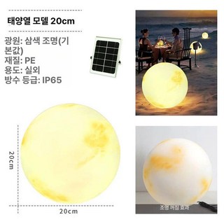 대형 달 조명 펜션 충전 보름 북유럽 배경 벽걸이 카페, 1개, 태양열형 20cm 3색광