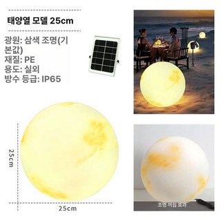 대형 달 조명 펜션 충전 보름 북유럽 배경 벽걸이 카페, 1개, 태양열형 25cm 3색광