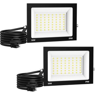 50W 플러드 라이트 실외기 5000LM 밝은 LED 플러그인 2팩 IP66 방수 100-265V 6500K 데이라이트 화이트 플러그 앤 플레이 방열 야드 차고, 2
