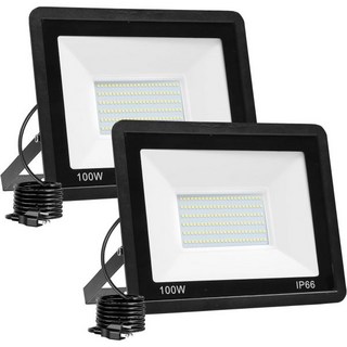 야외용 100W LED 플러드 라이트 4팩 10000LM 브라이트 워크 스포트라이트 플러그인 6000K 데이라이트 화이트 야드 가든 백야드 파티오 스타디움 주차장을, 2 Pack-100W
