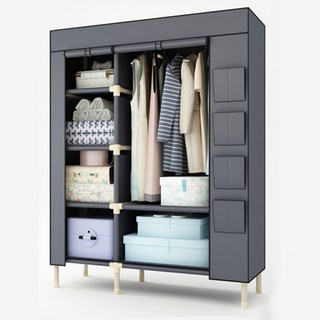 ANYOU 옷장 행거 코너 방진 가정용 수납 다기능 금속 옷장, 그레이