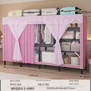 대형 조립식 옷장 커튼 드레스룸 캐비닛 조립 선반 철제, 보라색 선반 200cm