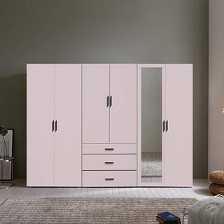 웰튼 블링카2400 키큰장 홈드레스룸 서랍형옷장 거울 장롱세트, 핑크-긴문거울옷장+3서랍장롱+긴문도어이불장