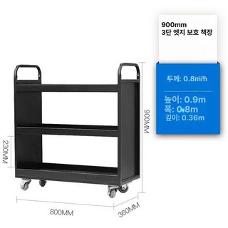 도서관 북카트 이동식 책꽃이 학습지정리함 우드, 1단, 블랙 3층 평판 보호 소음