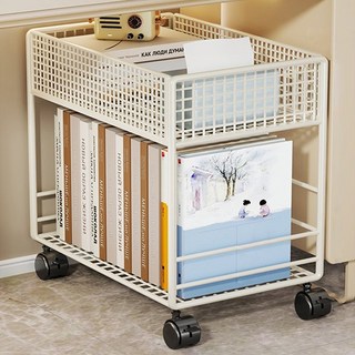 SeekFun 이동식 책꽂이 책상 옆 책꽂이 철제책 수납 간이 학생 책장, 화이트격자/ White grid, 2단