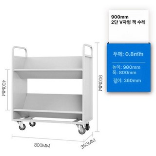 도서관 북카트 이동식 책꽃이 학습지정리함 우드, 1단, 2층 V형 서랍차 소음
