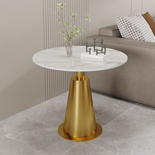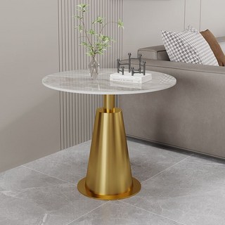 호텔 원형 테이블 화강석 돌탁자 북유럽 식탁 유럽식 간편테이블 가볍고 위치변경 쉬움, 모으다, 골드 프레임 + 백설 공주 흰색 직경 70 높이 75c