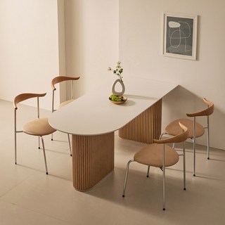 제이픽스 그레이스 세라믹 반타원 테이블, 네추럴 + 화이트 + 네추럴우드, 6인용